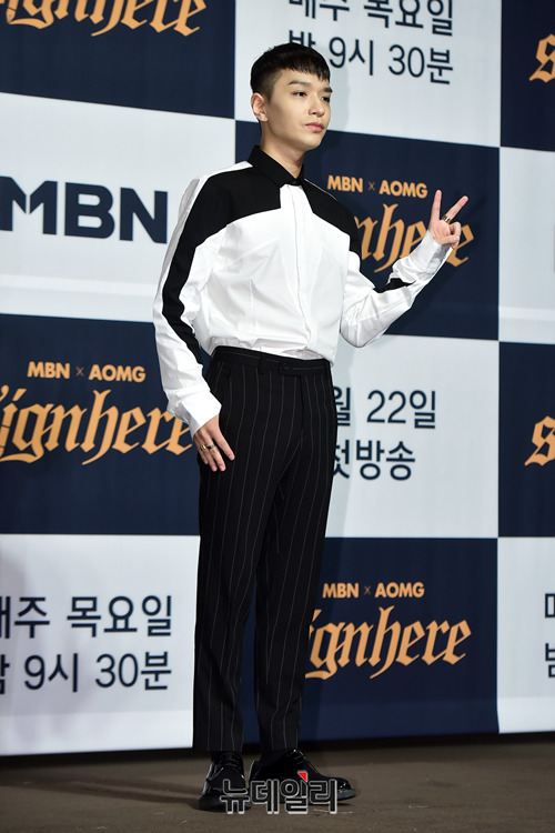 '사인히어'는 힙합 레이블 'AOMG'의 신입 아티스트를 선발하기 위한 신개념 힙합 오디션 프로그램이다. 밤 9시 30분 첫방송.