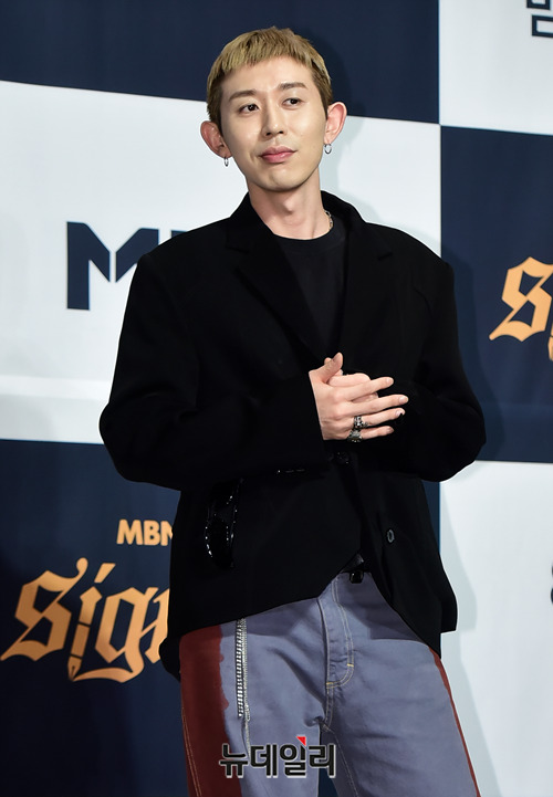 래퍼 코드쿤스트가 22일 오후 서울 중구 그랜드 앰배서더 서울에서 열린 MBN 예능 '사인히어(Signhere)' 제작발표회에서 포토타임을 갖고 있다.
