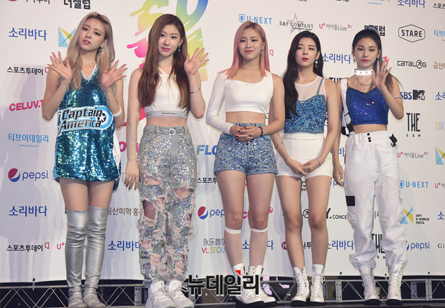 걸그룹 ITZY(있지)가 22일 오후 서울 송파구 올림픽공원 올림픽홀에서 열린 '2019 소리바다 어워즈(2019 SORIBADA BEST K-MUSIC AWARDS, 이하 2019 SOBA)' 블루카펫 행사에서 포토타임을 갖고 있다.