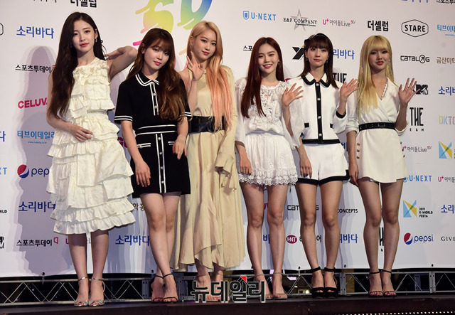 걸그룹 오마이걸이 22일 오후 서울 송파구 올림픽공원 올림픽홀에서 열린 '2019 소리바다 어워즈(2019 SORIBADA BEST K-MUSIC AWARDS, 이하 2019 SOBA)' 블루카펫 행사에서 포토타임을 갖고 있다.