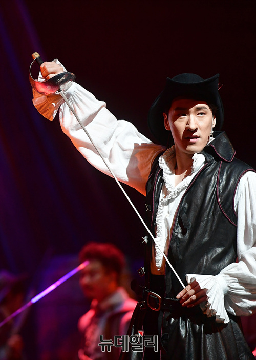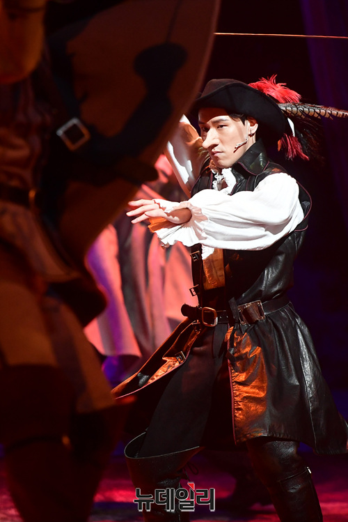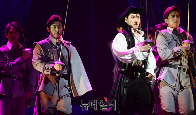배우 조형균이 22일 오후 서울 강남구 광림아트센터에서 열린 뮤지컬 '시라노' 프레스콜에서 하이라이트 장면을 시연하고 있다.
