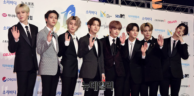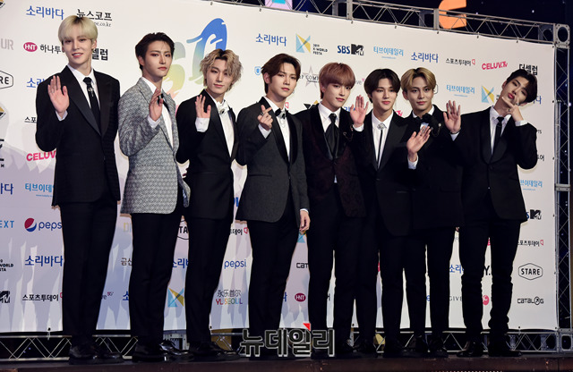 아이돌그룹 에이티즈가 22일 오후 서울 송파구 올림픽공원 올림픽홀에서 열린 '2019 소리바다 어워즈(2019 SORIBADA BEST K-MUSIC AWARDS, 이하 2019 SOBA)' 블루카펫 행사에서 포토타임을 갖고 있다.