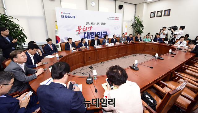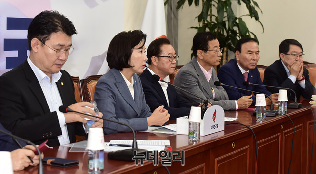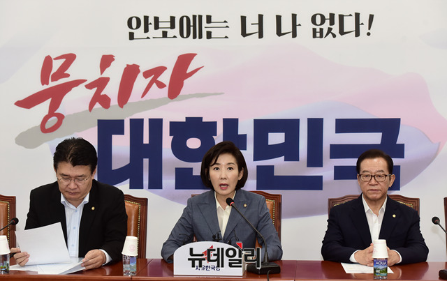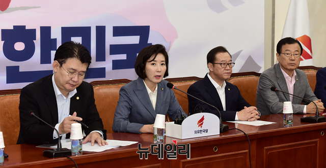 나경원 자유한국당 원내대표가 23일 오전 국회에서 열린 원내대책회의에서 모두발언을 하고 있다.