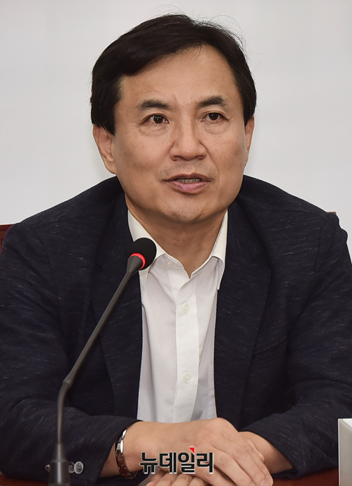 김진태 자유한국당 의원이 23일 오전 국회에서 열린 '조국 인사청문회 대책TF 4차 회의'에서 모두발언을 하고 있다.