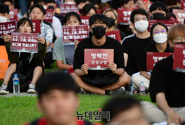 [포토] 캠퍼스에 모인 고려대 학생들 "명백한 진상규명"