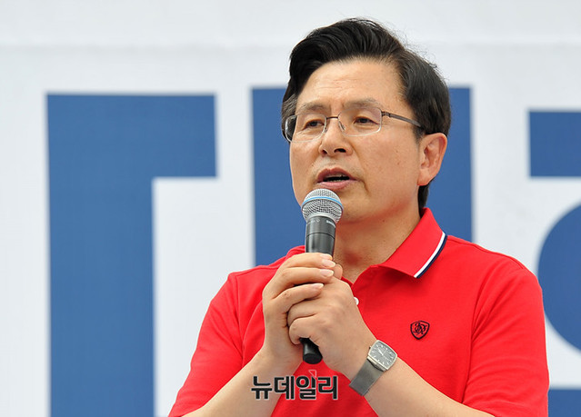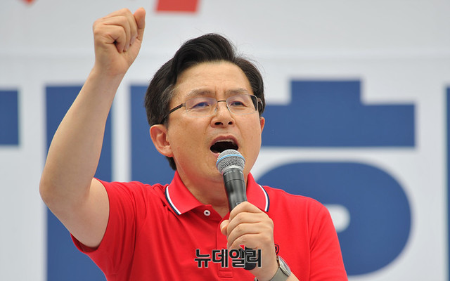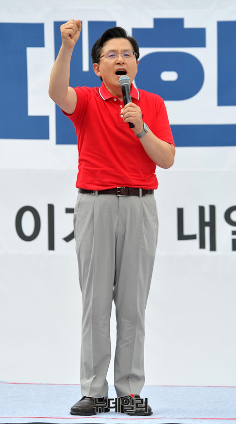 황교안 자유한국당 대표가 24일 오후 서울 종로구 세종문화회관 앞에서 열린 '살리자 대한민국! 文정권 규탄 광화문 집회'에서 발언을 하고 있다.