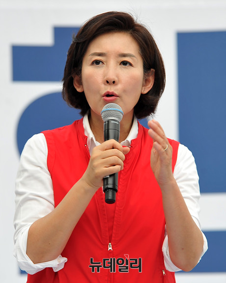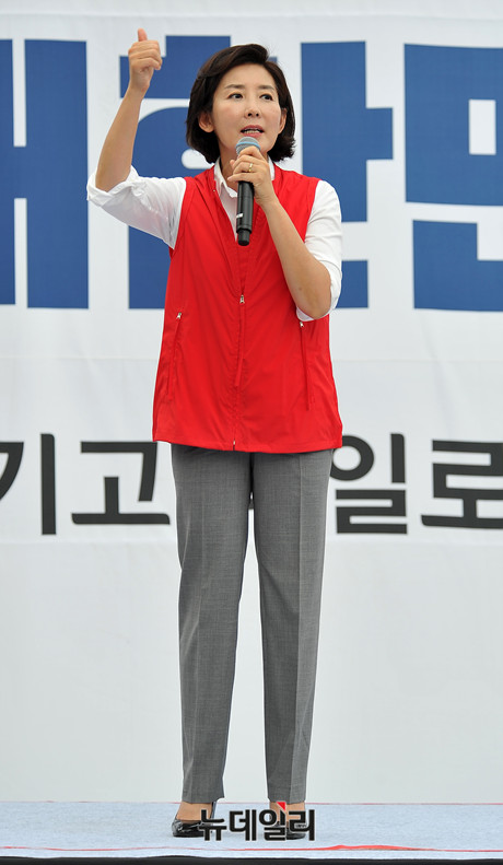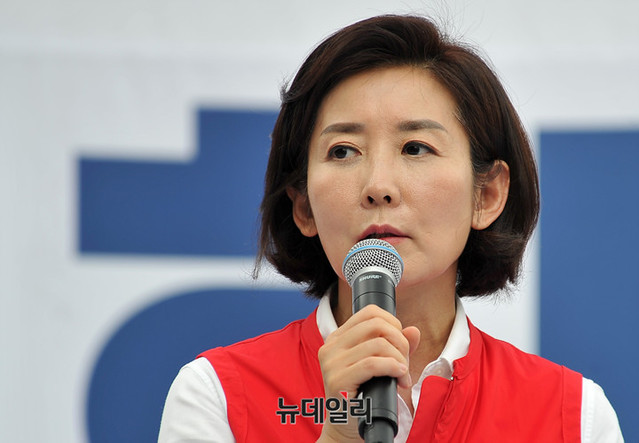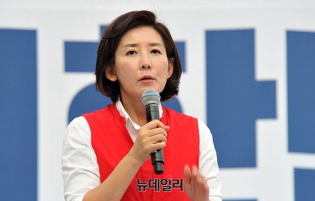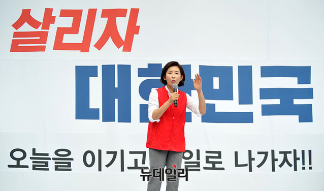 나경원 자유한국당 원내대표가 24일 오후 서울 종로구 세종문화회관 앞에서 열린 '살리자 대한민국! 文정권 규탄 광화문 집회'에서 발언을 하고 있다.
