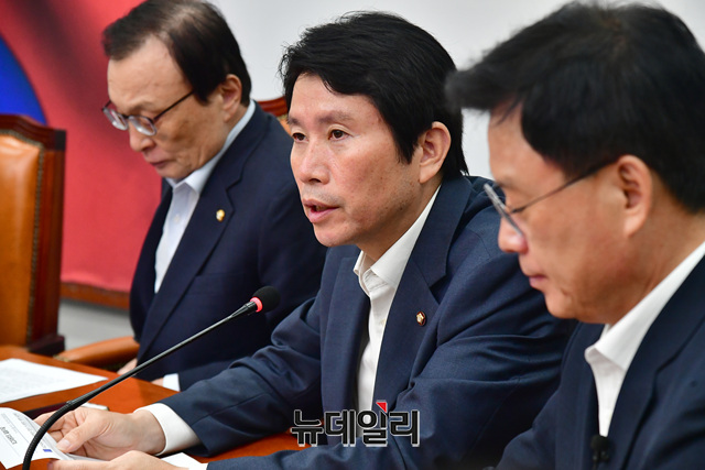 이인영 더불어민주당 원내대표가 26일 오전 국회에서 열린 최고위원회의에 참석해 모두발언을 하고 있다.