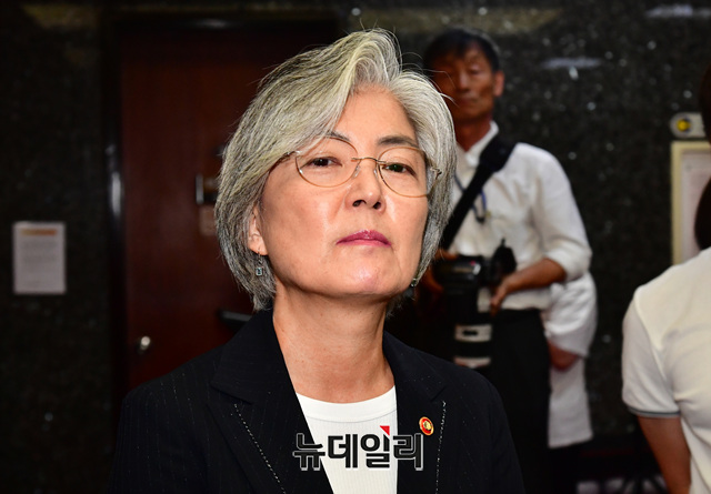 강경화 외교부장관이 26일 오전 국회에서 열린 예산결산위원회 전체회의에 참석하기 위해 입장하고 있다.