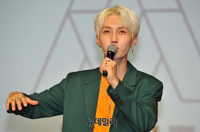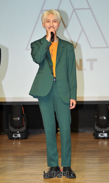 보이그룹 몬트(MONT) 로다가 28일 오후 서울 강남구 일지아트홀에서 열린 두 번째 미니앨범 '어썸 업(Awesome up!)' 발매 기념 쇼케이스에서 신곡 소개를 하고 있다.
