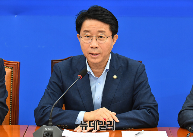 조정식 더불어민주당 정책위의장이 29일 오전 국회에서 열린 정책조정회의에서 모두발언을 하고 있다.