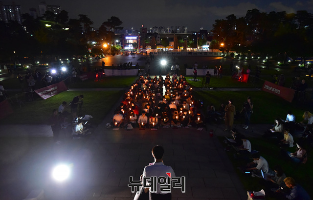 조국 법무부 장관 후보자 딸의 입시비리 의혹의 진상규명을 촉구하는 고려대학교 2차 촛불집회가 30일 오후 서울 성북구 고려대학교 중앙광장에서 진행되고 있다.