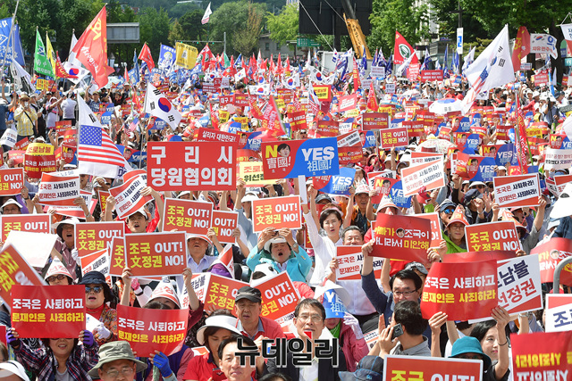 [포토] 조국 규탄 구호 외치는 황교안 대표