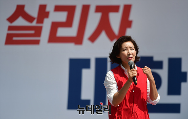 나경원 자유한국당 원내대표가 31일 오후 서울 종로구 사직공원 인근에서 열린 문재인 정권 규탄 집회에서 발언하고 있다.
