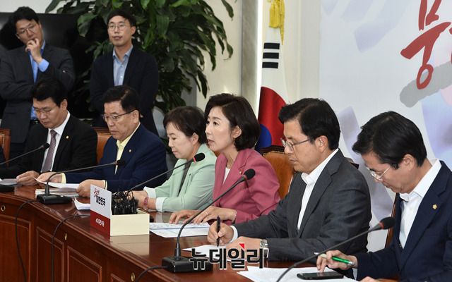나경원 자유한국당 원내대표가 2일 오전 국회에서 열린 최고위원회의에서 모두발언을 하고 있다.