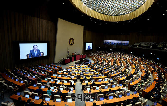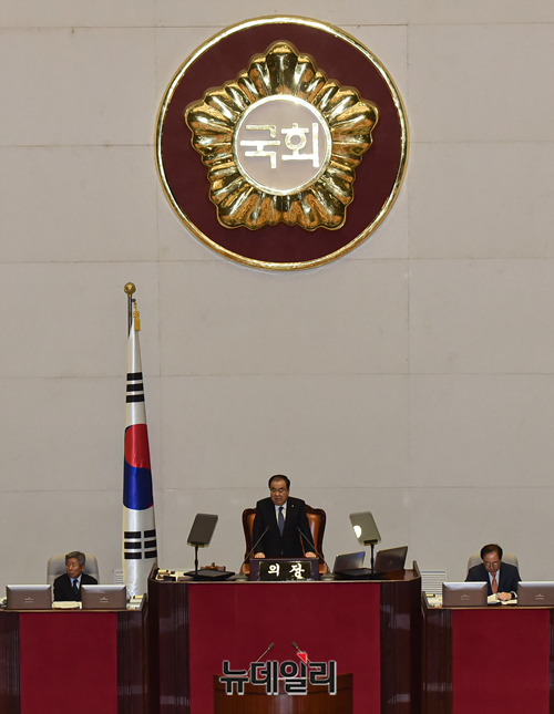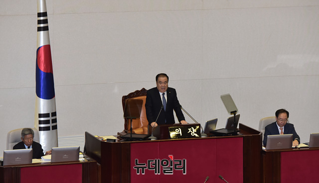 문희상 국회의장이 2일 오후 국회 본회의장에서 열린 제371회 본회의에서 개회사를 하고 있다.