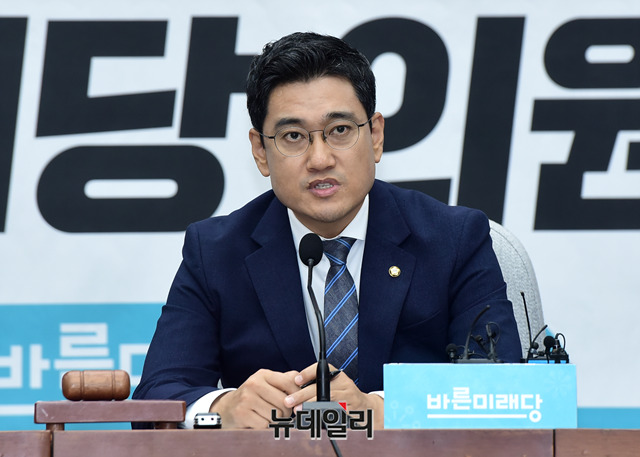 오신환 바른미래당 원내대표가 2일 오후 국회에서 열린 의원총회에서 모두발언을 하고 있다.