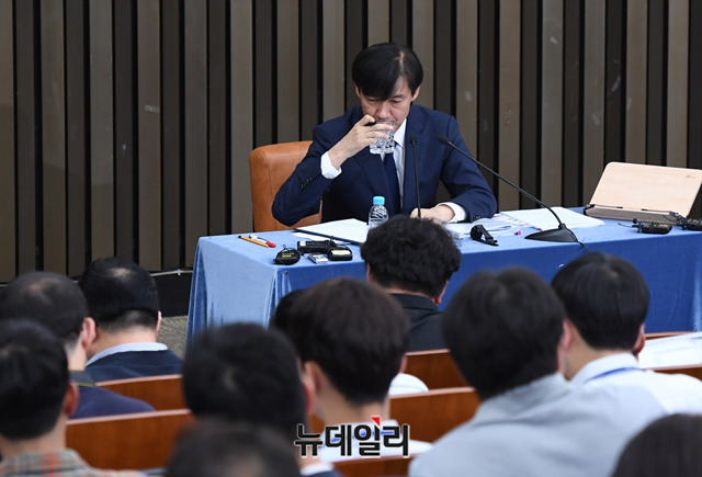[포토] 대국민 기자회견, 물 마시는 조국 후보자