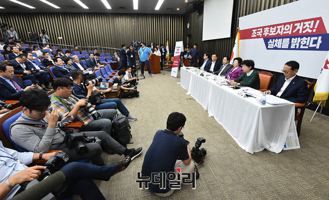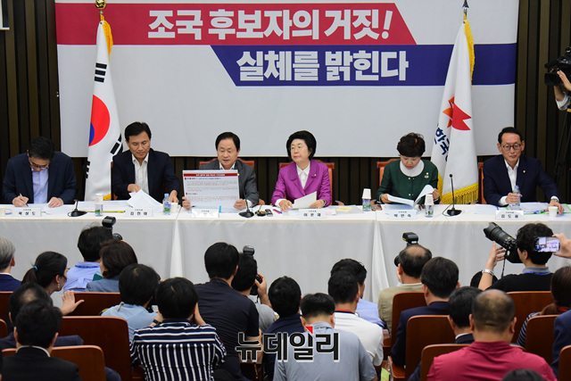 [포토] 조국 후보자 의혹 관련 간담회 갖는 자유한국당