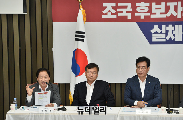 주광덕 자유한국당 의원이 3일 오후 국회에서 열린 '조국 후보자의 거짓과 선동' 대국민 고발 언론간담회에서 조 후보자의 의혹과 관련해 발언하고 있다.