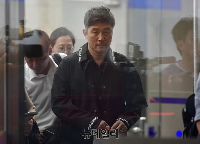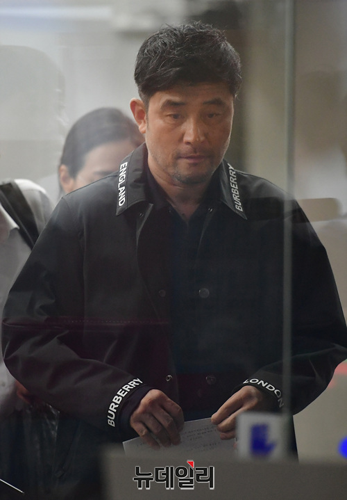 보복운전 혐의로 기소된 배우 최민수가 4일 오후 서울 양천구 서울남부지법에서 열린 선고공판 직후 법원을 나서고 있다. 재판부는 이날 최민수에게 징역 6월 집행유예 2년을 선고 했다.