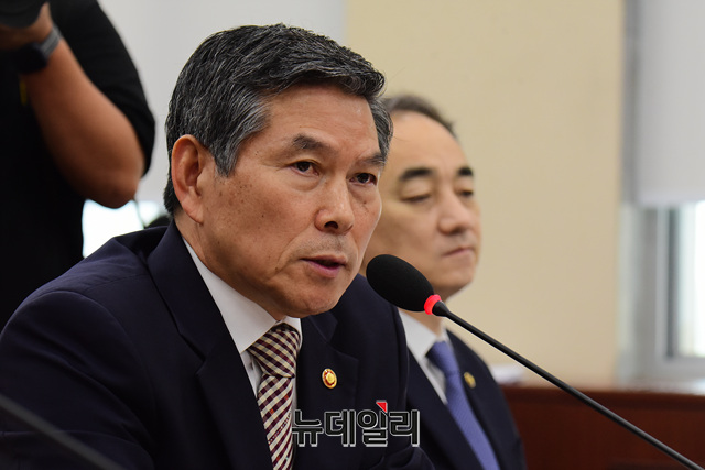 정경두 국방부장관이 4일 오후 국회에서 열린 국방위원회 전체회의에 참석해 서해 함박도 북한군 점령 논란 관련 질문에 답하고 있다.