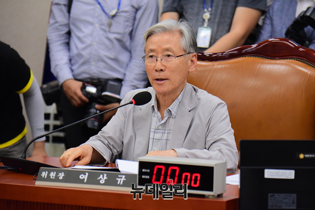 여상규 국회 법사위원장이 4일 오후 국회에서 열린 조국 법무부 장관 후보자 인사청문회 실시계획서 채택을 위해 열린 법사위 전체회의에서 회의를 주재하고 있다.