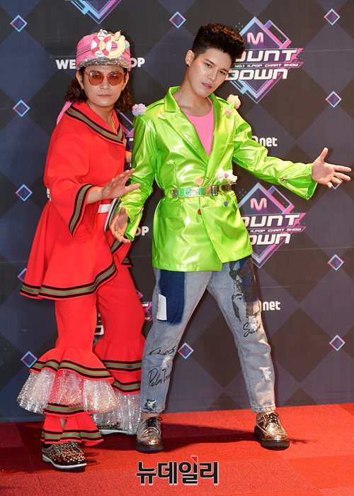 노라조가 5일 오후 서울 마포구 CJ E&M에서 엠넷 음악프로그램 '엠카운트다운' 생방송을 앞두고 포토타임을 갖고 있다.