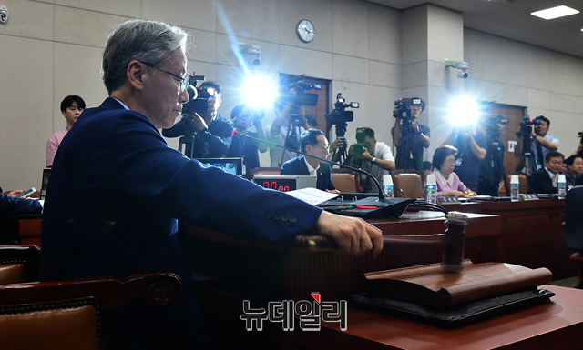 여상규 법제사법위원회 위원장이 5일 오후 국회에서 열린 전체회의에서 조국 법무부 장관 후보자 인사청문회 실시계획서, 증인 채택 안건을 의결하고 있다.