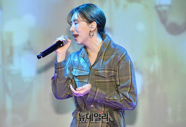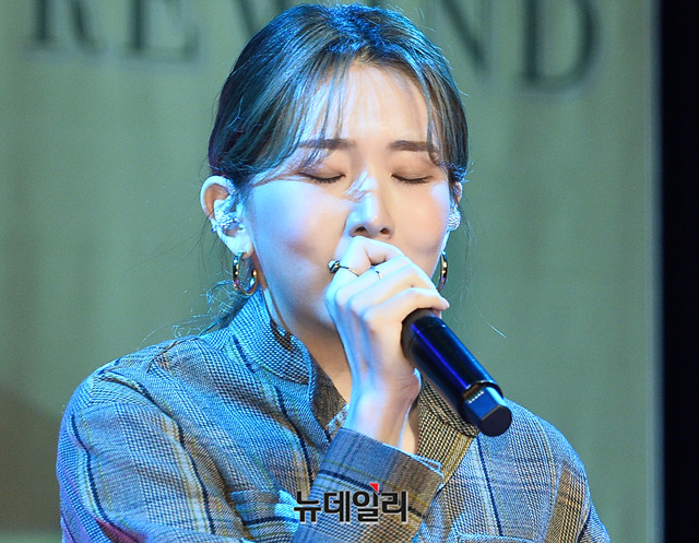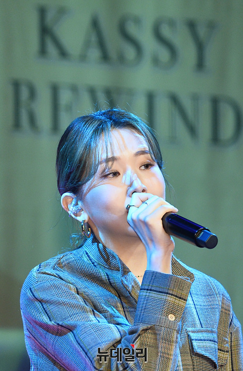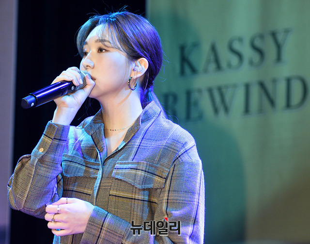 가수 '케이시(Kassy)'가 5일 오후 서울 강남구 일지아트홀에서 열린 미니앨범 '리와인드(Rewind)' 쇼케이스에서 무대를 선보이고 있다.