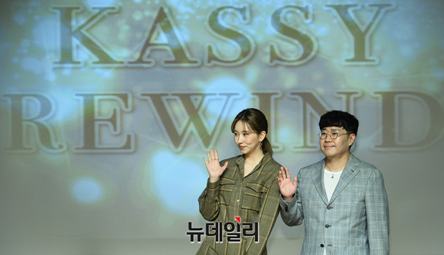 가수 '케이시(Kassy)'와 작곡가 조영수가 5일 오후 서울 강남구 일지아트홀에서 열린 미니앨범 '리와인드(Rewind)' 쇼케이스에서 포토타임을 갖고 있다.