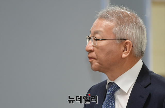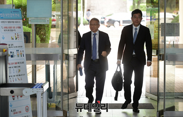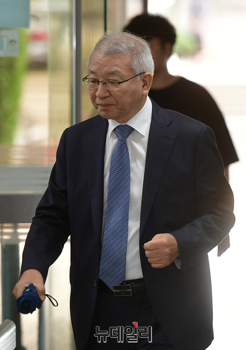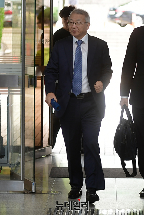 사법행정권 남용 의혹을 받는 양승태 전 대법원장이 6일 오전 서울 서초구 서울중앙지법에서 열린 공판에 출석하고 있다.
