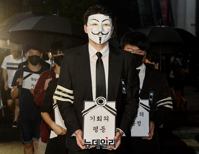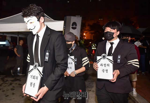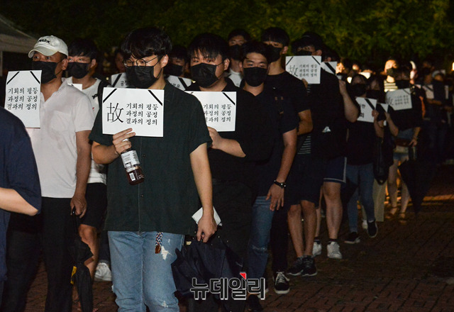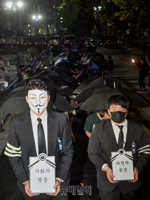 이날 3차 집회에 참석한 고려대 재학생과 졸업생 100여명은 "기회는 평등하게, 과정은 공정하게, 결과는 정의롭게"를 외쳤다.