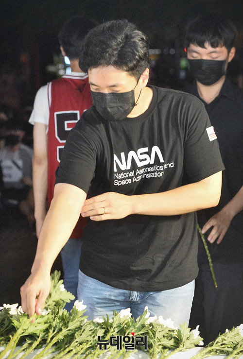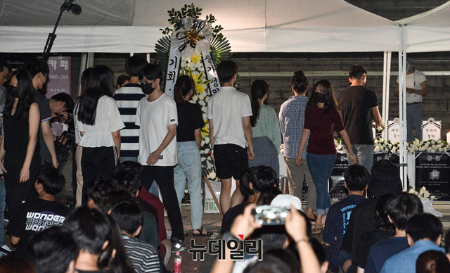 [포토] 고려대 조국 반대 3차 촛불집회, 헌화하는 학생들