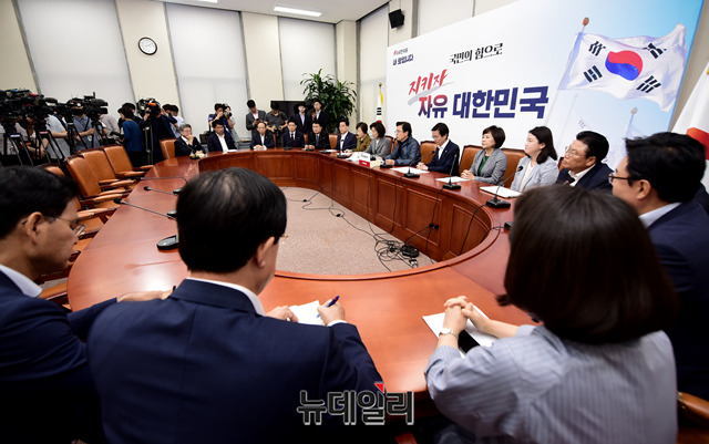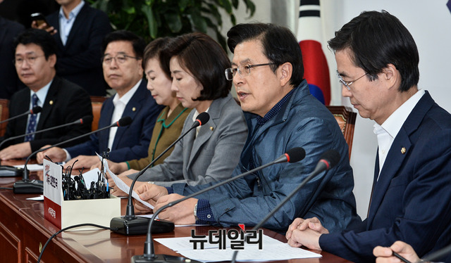 황교안 자유한국당 대표가 16일 오전 국회에서 열린 최고위원회의에서 모두발언을 하고 있다.