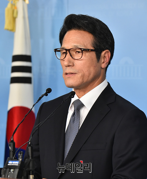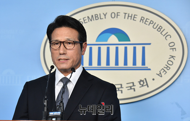 정병국 바른미래당 의원이 16일 오후 국회 정론관에서 손학규 대표 사퇴촉구 기자회견을 갖고 있다.