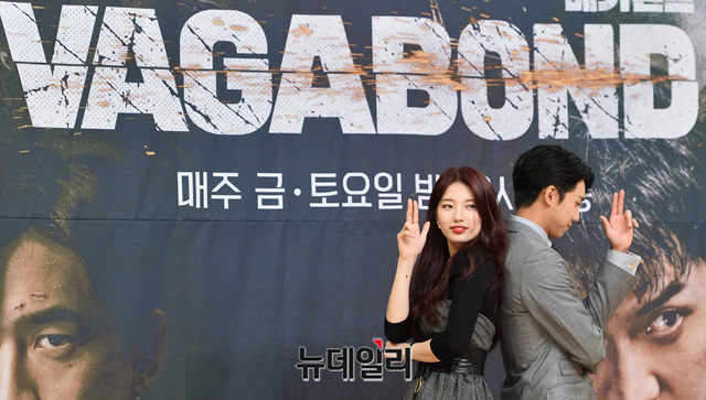 배우 배수지(왼쪽), 이승기가 16일 오후 서울 양천구 SBS에서 열린 '배가본드(연출 유인식, 극본 장영철 정경순)' 제작발표회에서 포토타임을 갖고 있다.