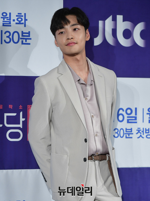 배우 김민재가 16일 오후 서울 여의도 콘래드 호텔에서 열린 JTBC월화드라마 '조선혼담공작소 꽃파당(극본 김이랑, 연출 김가람)' 제작보고회에서 포토타임을 갖고 있다.