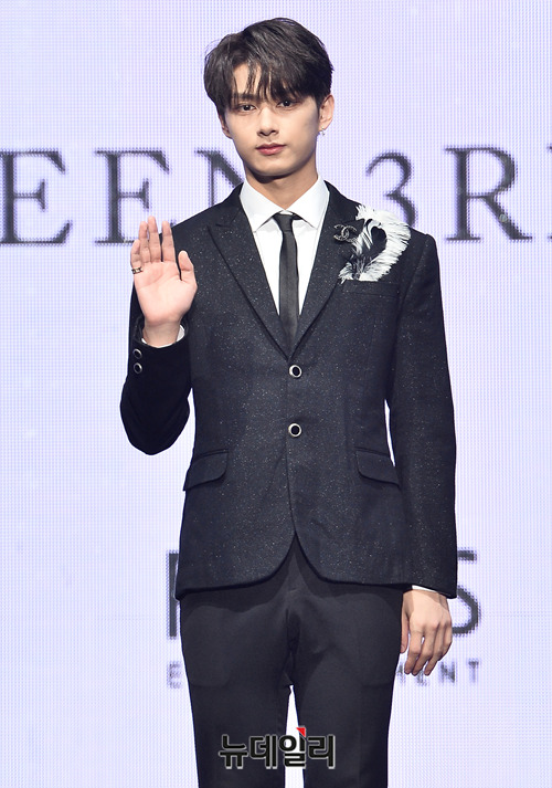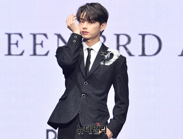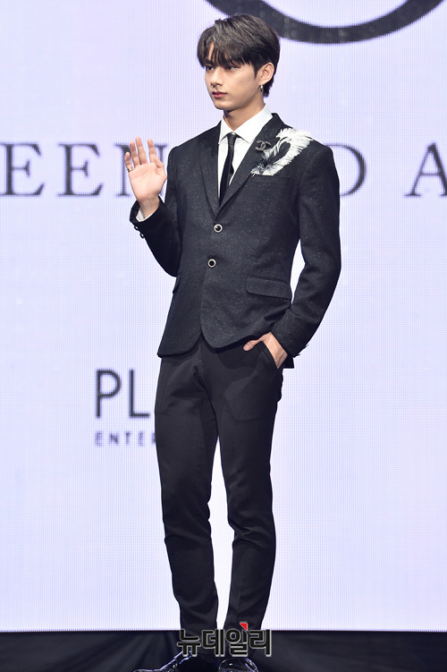 아이돌그룹 세븐틴(Seventeen) 준이 16일 오후 서울 성북구 고려대학교 화정체육관에서 열린 세 번째 앨범 '언 오드(An Ode)' 쇼케이스에서 포토타임을 갖고 있다.