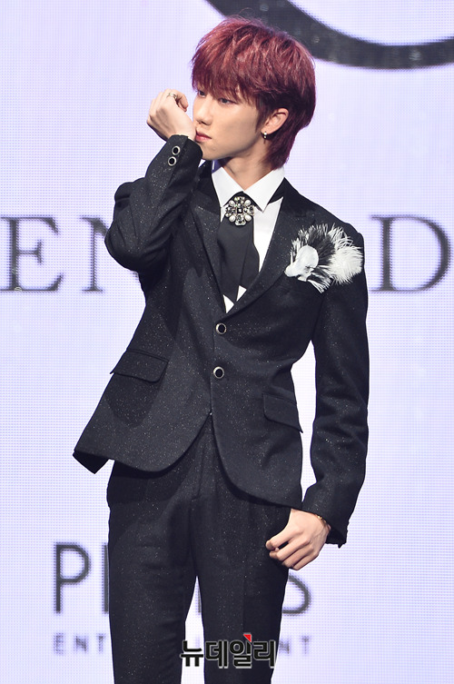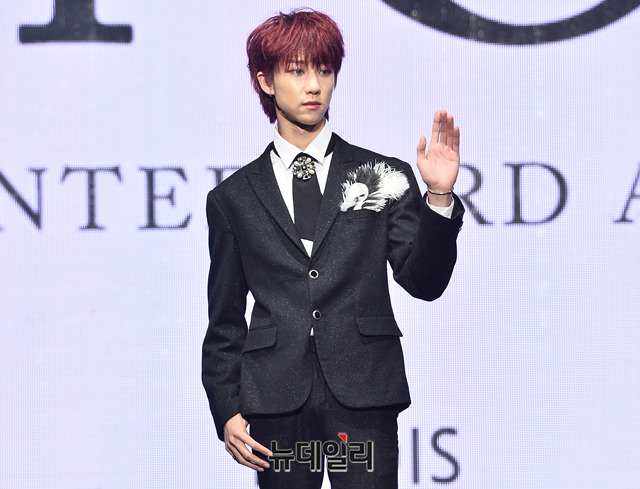 아이돌그룹 '세븐틴(Seventeen)' 디에잇이 16일 오후 서울 성북구 고려대학교 화정체육관에서 열린 세 번째 앨범 '언 오드(An Ode)' 쇼케이스에서 포토타임을 갖고 있다.