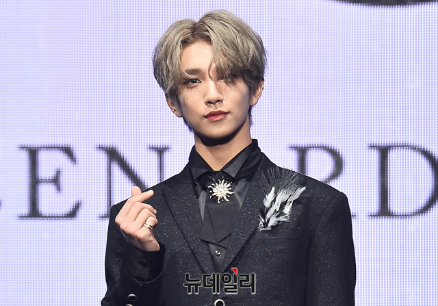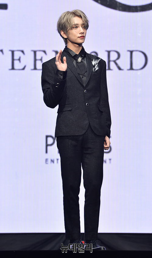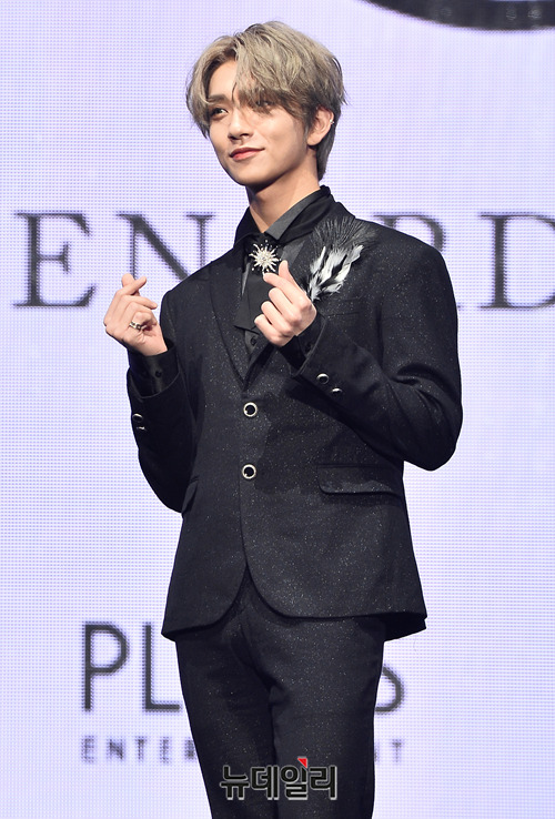 아이돌그룹 '세븐틴(Seventeen)' 조슈아가 16일 오후 서울 성북구 고려대학교 화정체육관에서 열린 세 번째 앨범 '언 오드(An Ode)' 쇼케이스에서 포토타임을 갖고 있다.