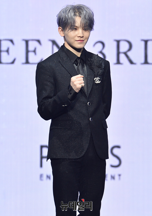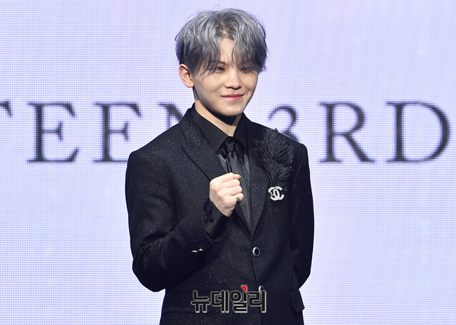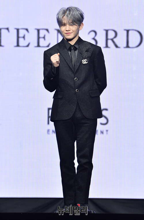 아이돌그룹 '세븐틴(Seventeen)' 우지가 16일 오후 서울 성북구 고려대학교 화정체육관에서 열린 세 번째 앨범 '언 오드(An Ode)' 쇼케이스에서 포토타임을 갖고 있다.