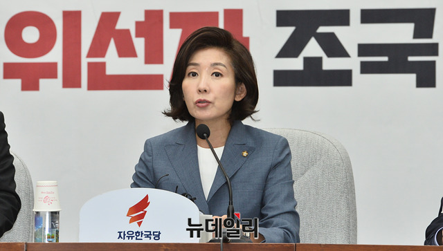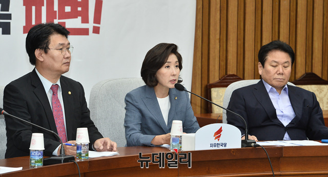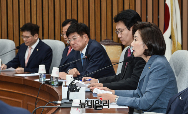 나경원 자유한국당 원내대표가 17일 오전 국회에서 열린 원내대책회의에서 모두발언을 하고 있다.