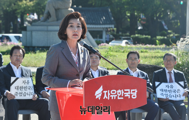 [포토] 청와대 앞 연석회의, 모두발언하는 나경원