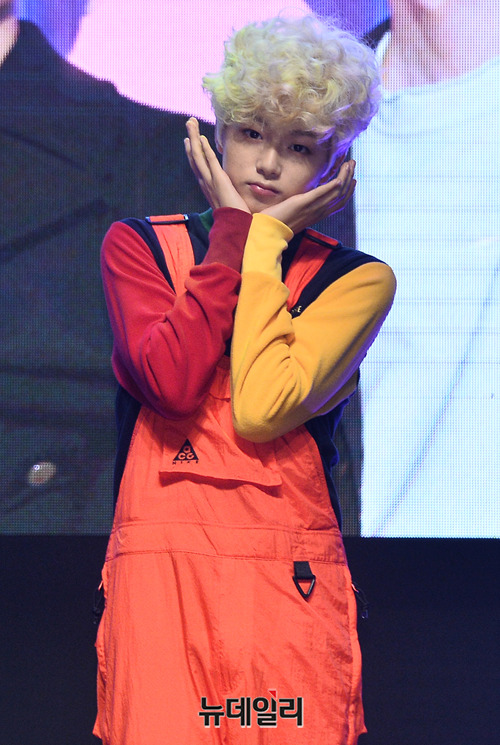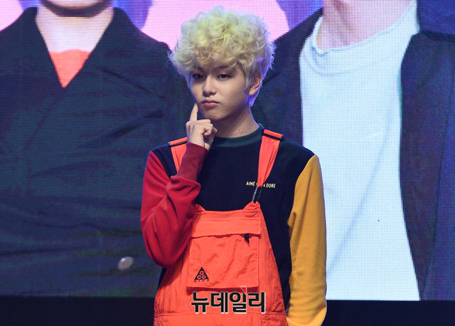 아이돌그룹 '틴틴(TEEN TEEN)' 멤버 이진우가 18일 오후 서울 용산구 블루스퀘어 아이마켓홀에서 열린 데뷔앨범 '베리 온 탑(VERY, ON TOP)' 쇼케이스에서 포토타임을 갖고 있다.