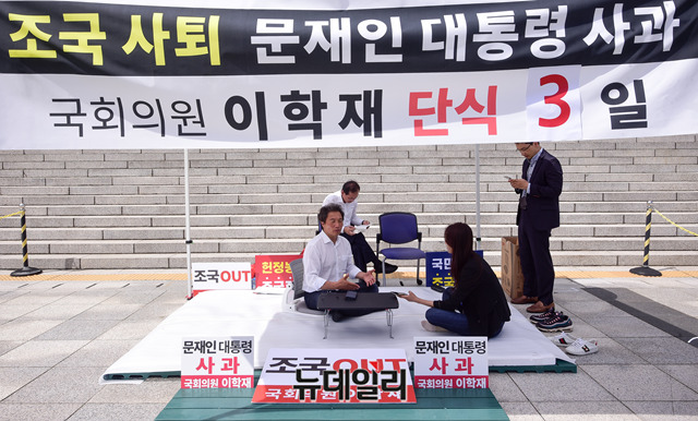 [포토] '조국퇴진' 주장하며 단식투쟁하는 이학재