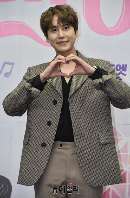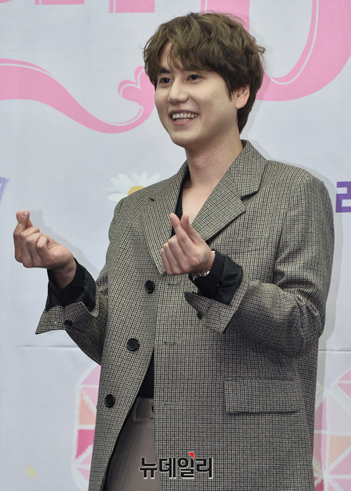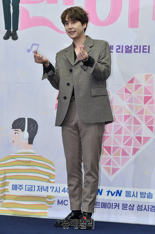 가수 규현이 19일 오후 서울 마포구 스탠포드호텔에서 열린 XtvN 예능프로그램 '노래에 반하다(연출 이원형 박주미)' 제작발표회에서 포토타임을 갖고 있다.