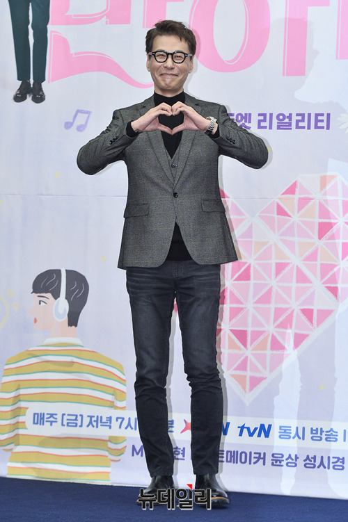 가수 윤상이 19일 오후 서울 마포구 스탠포드호텔에서 열린 XtvN 예능프로그램 '노래에 반하다(연출 이원형 박주미)' 제작발표회에서 포토타임을 갖고 있다.