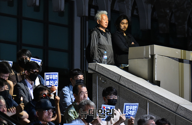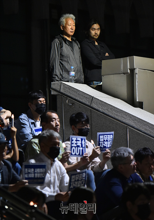 [포토] 연세대, 조국 사퇴 촉구 촛불집회 지켜보는 류석춘 교수