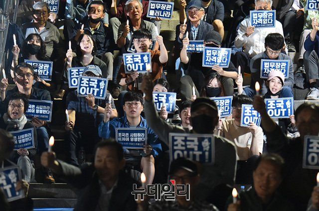 [포토] 조국 사퇴촉구 촛불든 연세대 동문들